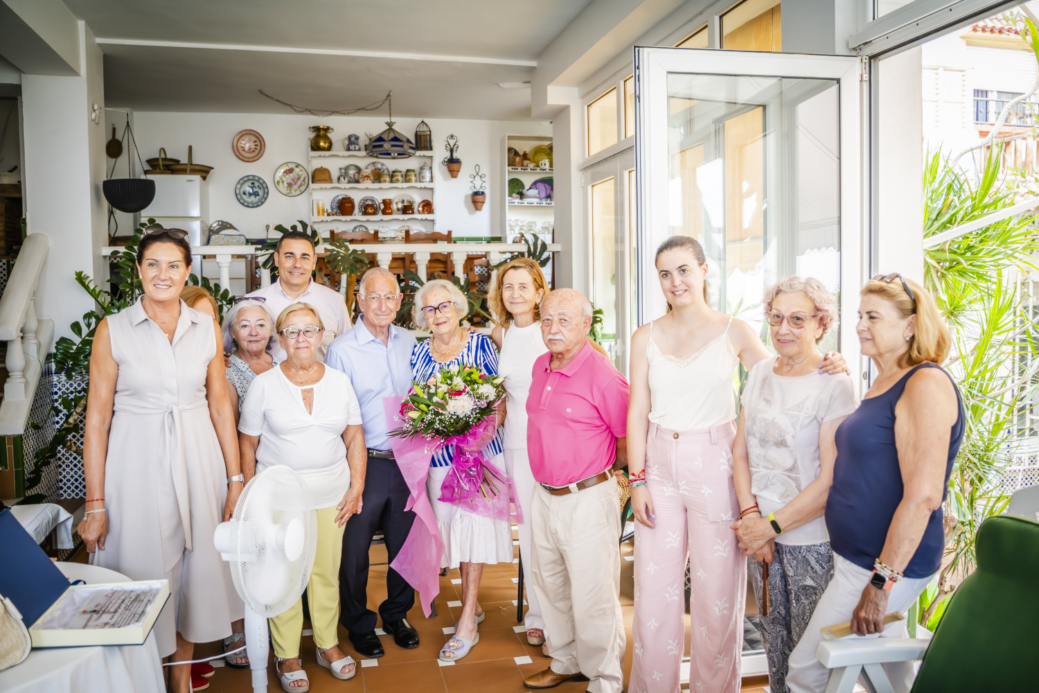 El alcalde de Roquetas de Mar, Gabriel Amat, acompañado por la concejal de Servicios Sociales, Loles Moreno, la concejal de Mayores, Mari Ángeles Alcoba y el concejal delegado de Aguadulce, Daniel Salcedo, ha hecho entrega de un reconocimiento a María Rodríguez Cazorla, vecina de 89 años y socia de mayor edad de la Asociación Círculo de la Tercera Edad de Aguadulce. Se trata de una distinción que concede el Ayuntamiento con la que se quiere reconocer la contribución que los vecinos y vecinas de Roquetas de Mar han llevado a cabo a lo largo de su vida en beneficio del desarrollo del municipio.