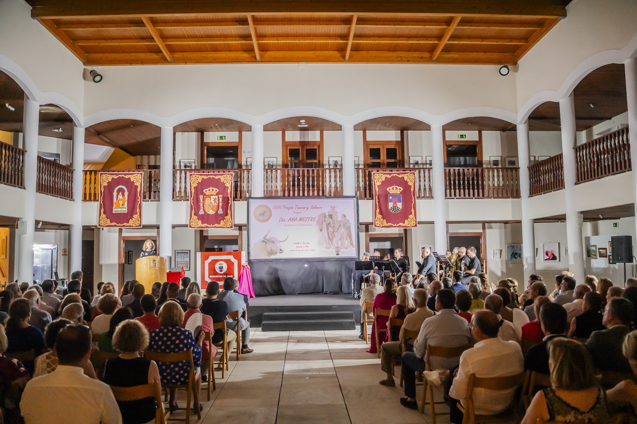 Ana Mestre comenzó su intervención destacando la importancia de la tauromaquia y su arraigo en la cultura andaluza, afirmando que “no vengo a otra cosa que a transmitir un sentimiento llevado a tinta y pregonado para todos ustedes. Espero que disfrutemos de este rato como lo que es: el comienzo de una buena tarde de toros”.
