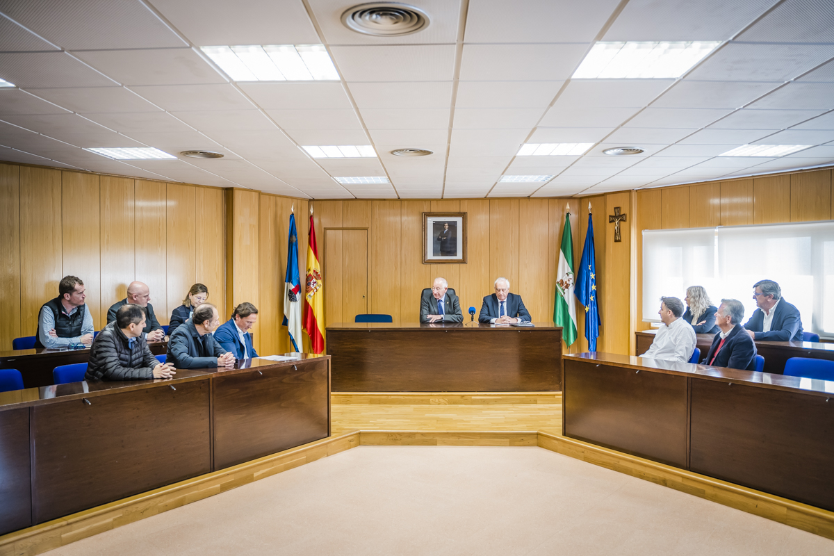 El presidente de la Confederación Empresarial de la provincia de Almería, José Cano, acompañado de su Comisión Ejecutiva y de la Junta Directiva de Asempal-Roquetas, ha realizado una visita institucional al Ayuntamiento de Roquetas de Mar y ha mantenido un encuentro con el alcalde del municipio, Gabriel Amat.