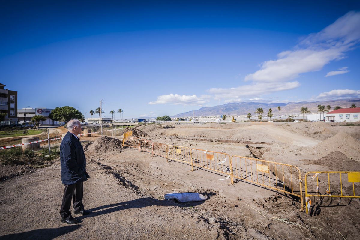 El alcalde de Roquetas de Mar, Gabriel Amat, se ha desplazado hasta esta zona para comprobar el inicio de estos trabajos que han sido adjudicados a la empresa Ovisa Pavimentos y Obras S.L.U, por un importe de 1.879.071,02 euros y un plazo de ejecución estimado de 13 meses.