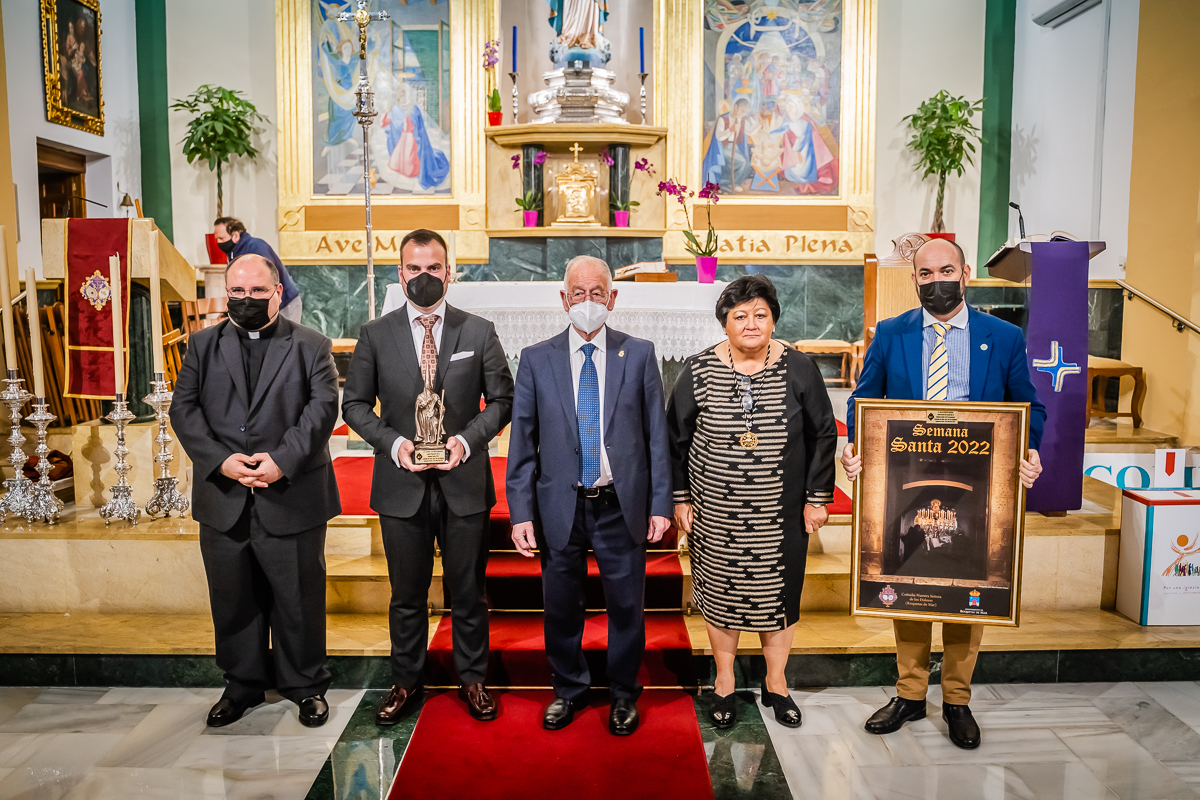 El alcalde de Roquetas de Mar, Gabriel Amat, felicitó al pregonero y al autor del cartel y mostró su satisfacción al comprobar que el templo se había llenado de gente para acudir a un acto con el que, sobre todo, se da la bienvenida a la Semana Santa de Roquetas de Mar que después de tres años volverá a vivirse con normalidad.