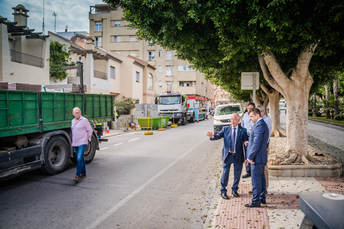 El alcalde de Roquetas de Mar, Gabriel Amat, acompañado por el concejal de Agenda Urbana, José Luis Llamas, ha visitado los trabajos de mejora de accesibilidad que durante estos días se están llevando a cabo en la zona del Paseo de Los Baños.