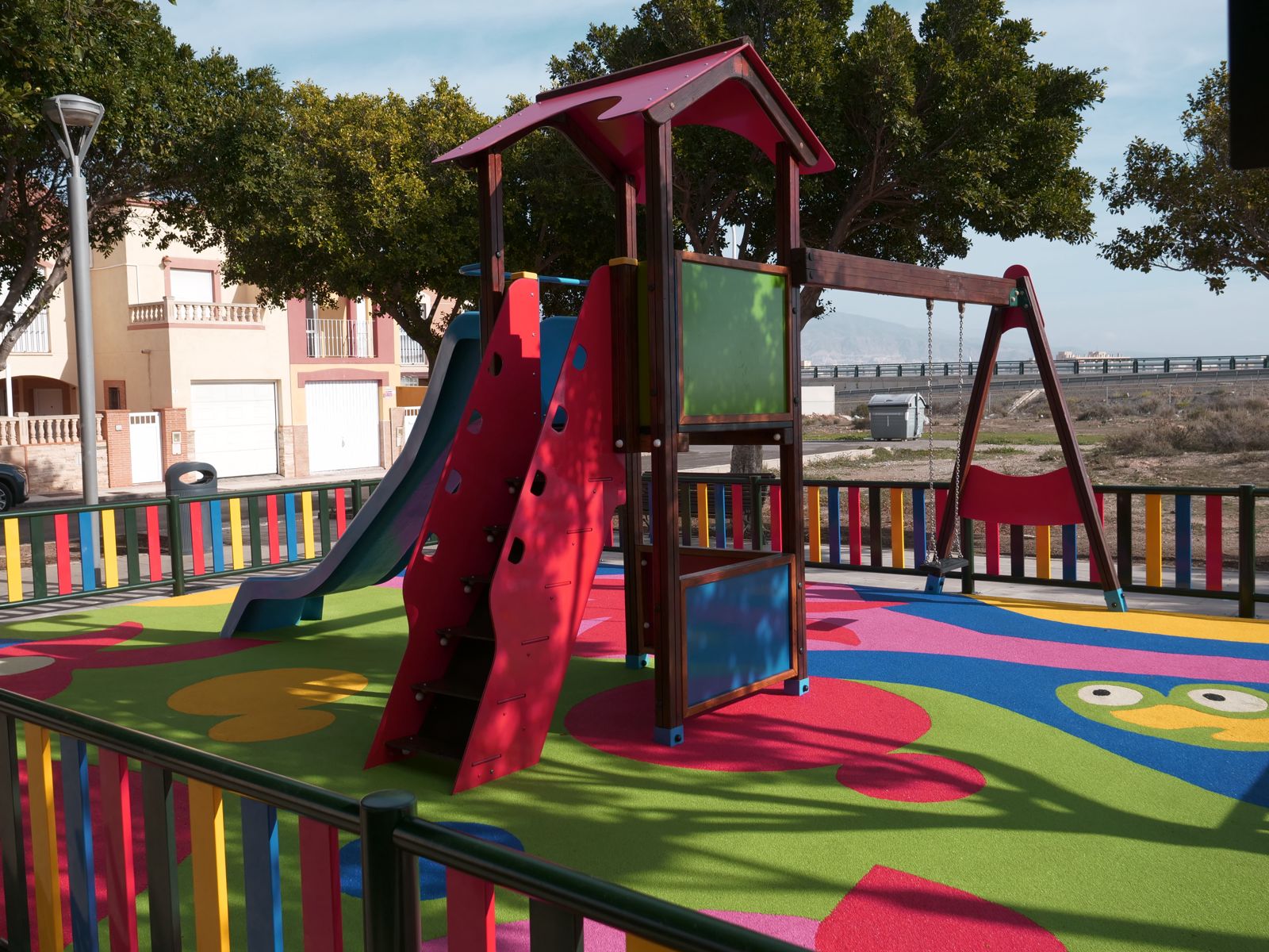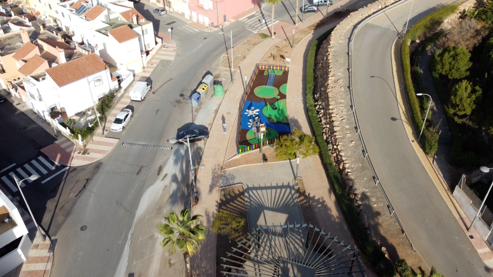 Entre las actuaciones que se han llevado a cabo destaca la sustitución de todos los elementos con la instalación de nuevo suelo (pavimento de caucho continuo), señalización y vallado del área. También se ha llevado a cabo la remodelación integral del parque situado en la calle Génova, en Aguadulce norte, que tiene una temática enfocada al mar.
