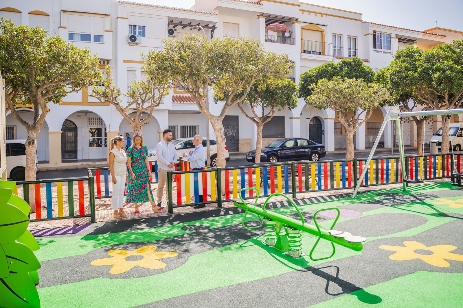 El Ayuntamiento de Roquetas de Mar, a través de la concejalía de Protección del Medio Ambiente y Zonas Verdes, ha llevado a cabo la remodelación de distintos parques infantiles que se encontraban en estado de deterioro. En concreto, se ha llevado a cabo una obra de mejora integral en el parque infantil ubicado en la Plaza Manos Unidas en la que se ha recreado un jardín con un suelo que simula a una pradera verde junto con juegos infantiles cuyo color se integran con los árboles que rodean a la plaza.