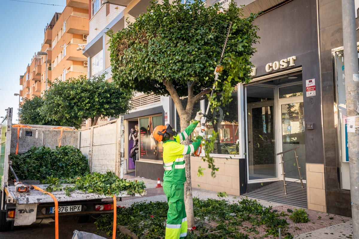 El Ayuntamiento de Roquetas de Mar, a través de la concejalía de Parques y Jardines que dirige Susi Ibáñez Toro, continúa acometiendo trabajos de mejora y mantenimiento en las zonas de arbolado de la totalidad del municipio.