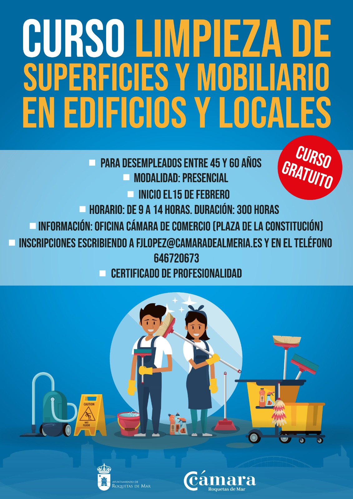 Por su parte, el Curso en Limpieza de Superficies y Mobiliario en Edificios y Locales está dirigido a desempleados en edades comprendidas entre los 45 y 60 años. El objetivo de este programa, que cuenta con 300 horas formativas en total y prácticas en empresa, es preparar a los asistentes para la realización de tareas de limpieza y mantenimiento de superficies y mobiliario en edificios y locales, seleccionando las técnicas, productos y máquinas para garantizar la higienización, conservación y mantenimiento. Con esta titulación podrán trabajar en hospitales, residencias, colegios, hoteles y cualquier servicio de limpieza.
