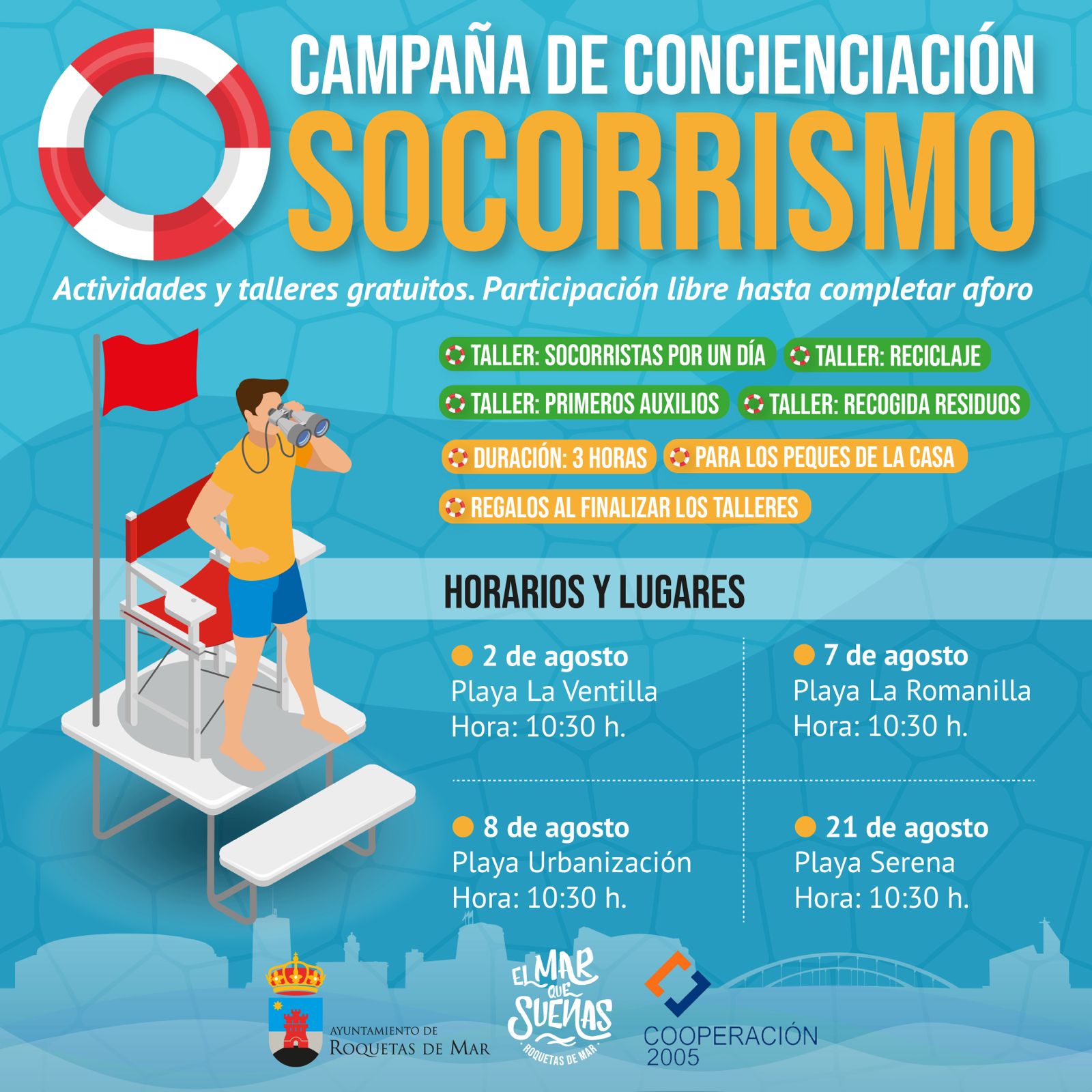El Ayuntamiento de Roquetas de Mar, a través del área de Turismo y Playas, ha puesto en marcha una campaña de concienciación y sensibilización que va a llevar a cabo el Servicio de Salvamento, Socorrismo y Primeros Auxilios durante todo el mes de agosto en las playas del municipio.