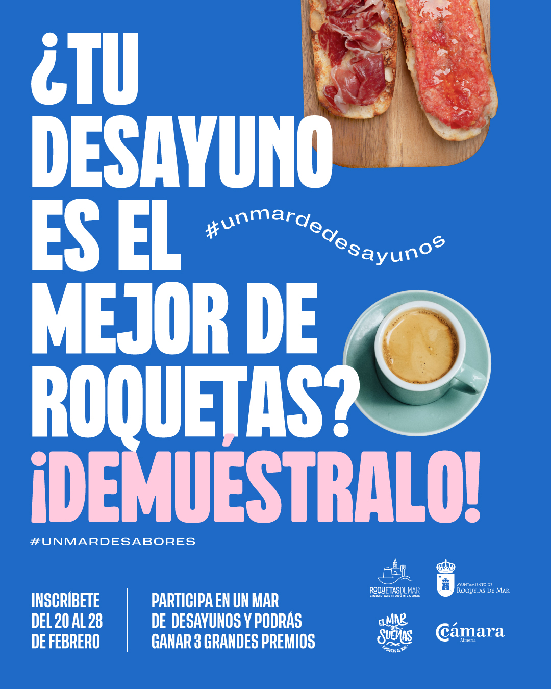 Bajo el lema “Un mar de desayunos” se ha diseñado esta iniciativa que cuenta con la colaboración de la Cámara de Comercio de Almería y cuyo objetivo es poner en valor la cultura del desayuno y la calidad y profesionalidad de los establecimientos del municipio a los que cada mañana acuden roqueteros y visitantes para disfrutar de la primera comida del día.