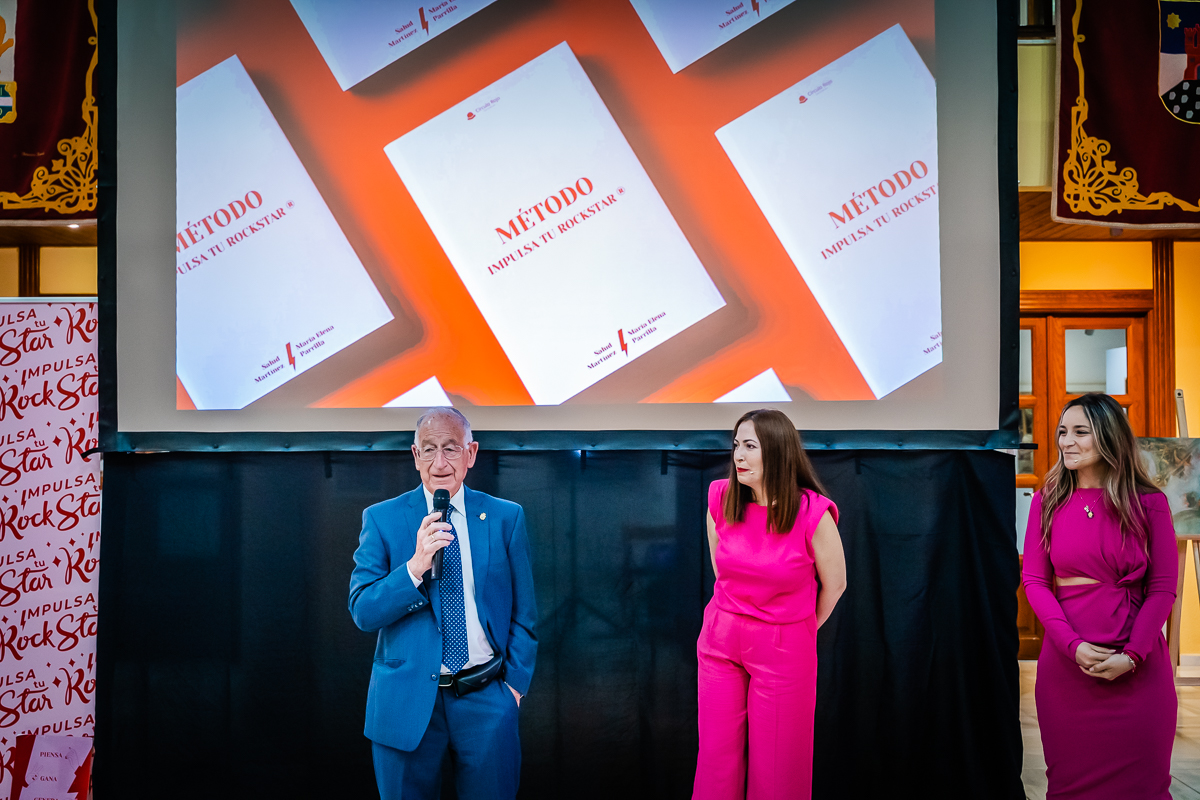 El alcalde de Roquetas de Mar, Gabriel Amat, acompañado por el concejal de Educación, Cultural y Juventud, Juanjo Salvador, ha asistido a la presentación del libro “Método Impulsa tu rockstar” en el Castillo de Santa Ana.