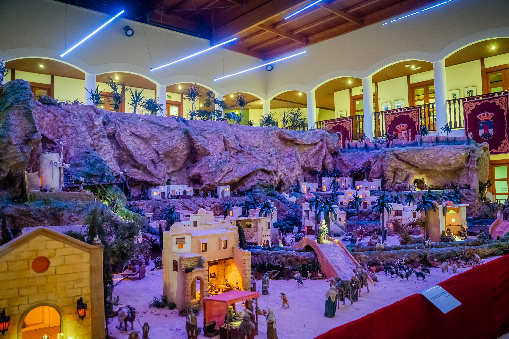 El Belén Municipal de Roquetas de Mar ocupa una superficie de 210 metros cuadrados en los que se concentran más de 2.000 figuras. Además, su paisaje y elementos decorativos fusionan enclaves y elementos tradicionales de los pasajes bíblicos con puntos de interés de la ciudad e incluso de otros puntos de la provincia como La Alcazaba o barrios históricos como La Chanca. También, el visitante puede contemplar monumentos como el Castillo de Santa Ana, las casas antiguas del puerto, Las Salinas con su embarcadero en el que se cargaba la sal o la ermita de la Virgen del Carmen de Aguadul