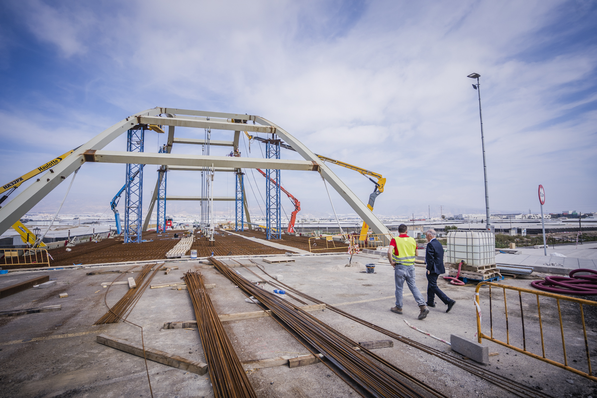 El alcalde de Roquetas de Mar ha visitado los trabajos que se están realizando en la Rambla El Cañuelo y ha podido comprobar cómo avanza la construcción del puente. Gabriel Amat ha asegurado que “en menos de dos meses estará terminado y los vehículos podrán circular por él”, porque las obras van a buen paso como puede comprobarse en la imagen.