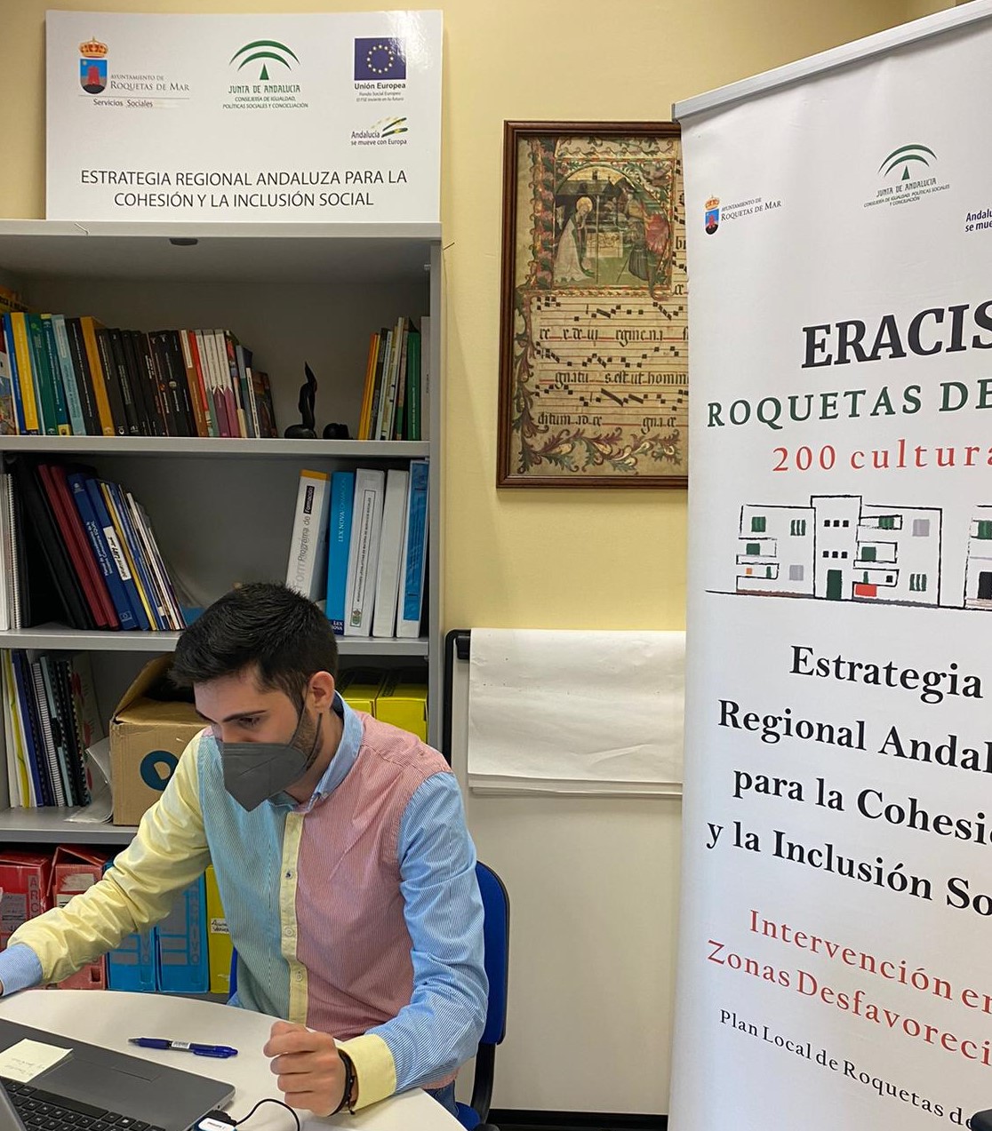 El Plan Local de Intervención en Zonas Desfavorecidas perteneciente a la Estrategia Regional Andaluza por la Cohesión y la Inclusión Social ‘ERACIS’ participó en las últimas semanas con la Universidad de Granada en una ponencia vía online para el alumnado del Grado en Educación Social. En la misma, uno de los integrantes del equipo, Diego José Castro, Educador Social de la Mesa Sectorial de Empleo, llevó a cabo una ponencia para la asignatura ‘Programas Públicos de Políticas Sociales. El papel de la Educación Social’ bajo el título ‘Tejiendo redes comunitarias'. La Educación Social dentro de los Servicios Sociales Comunitarios’. Asimismo, el profesional mostró a los futuros profesionales el papel de la educación social de los equipos interdisciplinares en los proyectos de desarrollo comunitario presentando como ejemplo claro el trabajo que desarrolla la ERACIS de Roquetas de Mar desde el nuevo ideario que proporciona la Ley de Servicios Sociales de Andalucía.