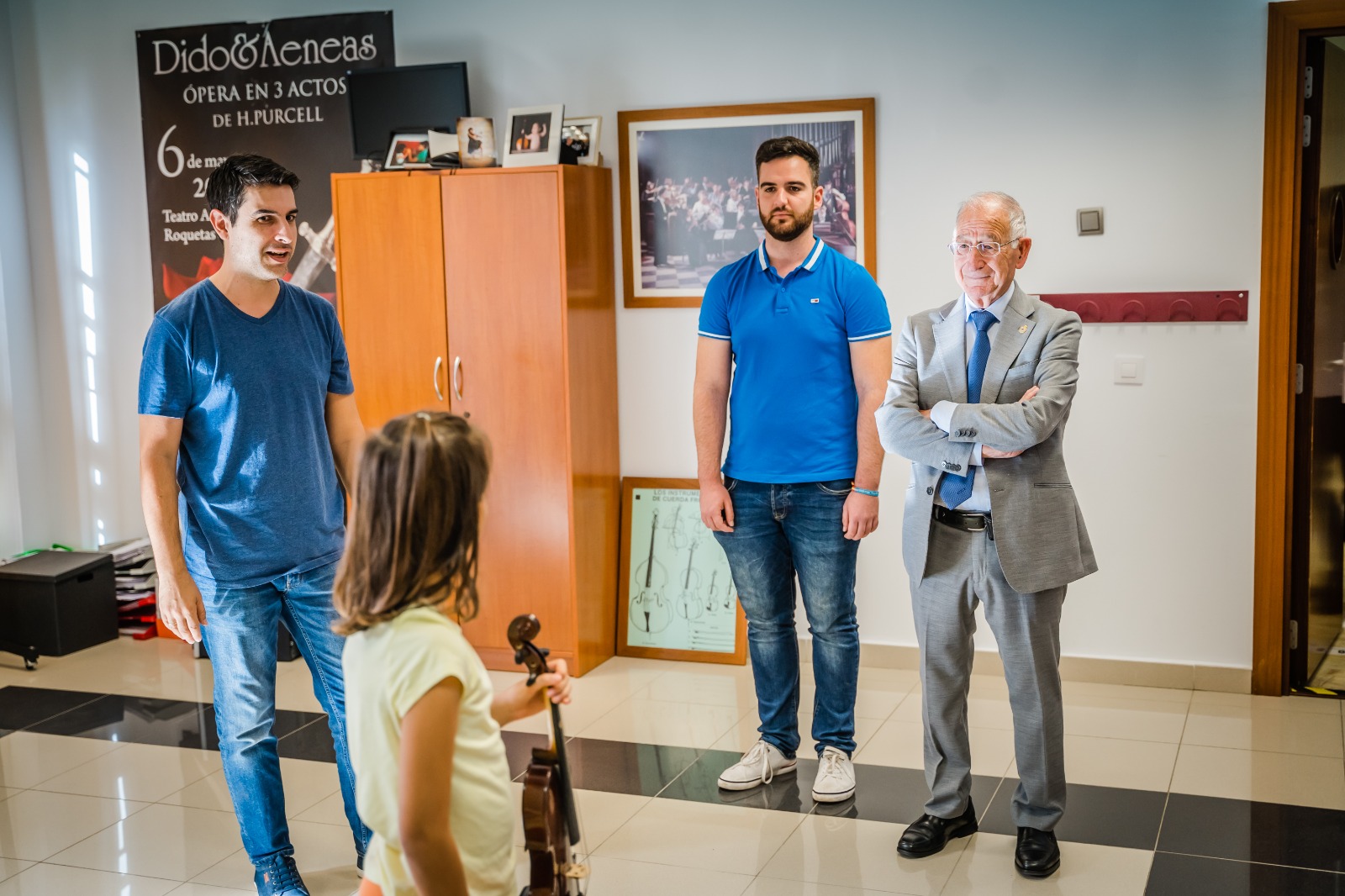 El alcalde de Roquetas de Mar, Gabriel Amat, acompañado por el concejal de Educación, Cultura y Juventud, Juan Carlos Muyor, han visitado la Escuela Municipal de Música, Danza y Teatro que, al igual que el resto de centro educativos, ha abierto ya sus puertas para afrontar un nuevo curso académico.