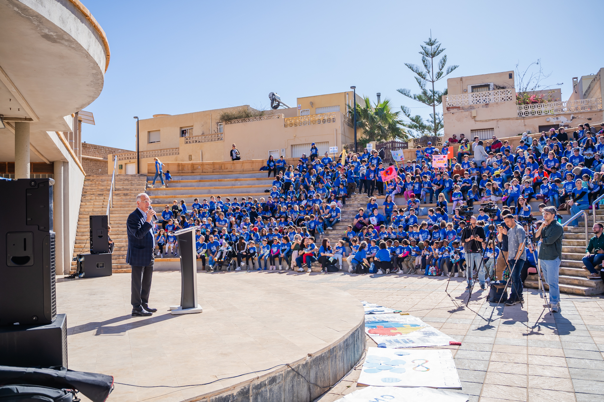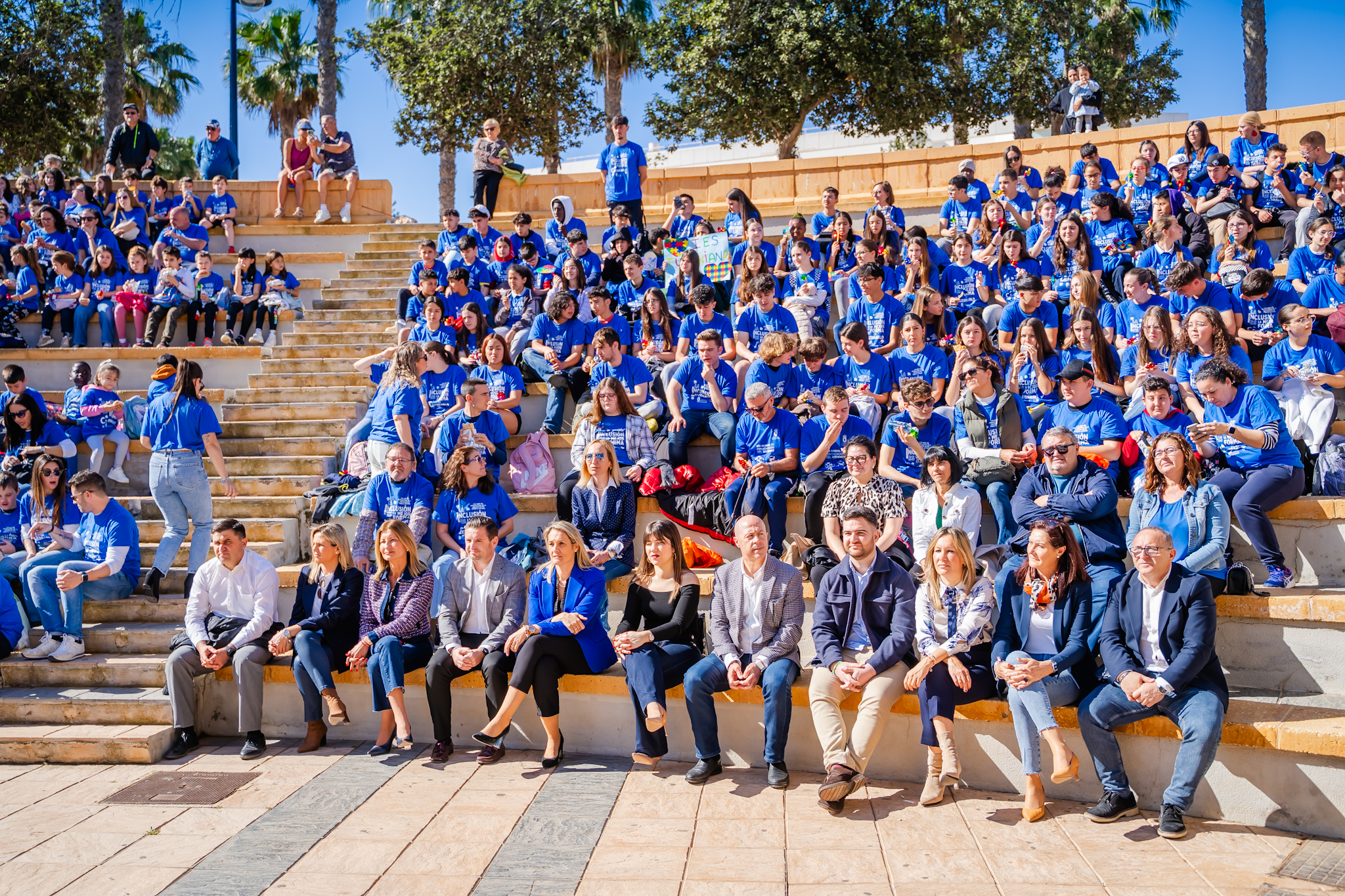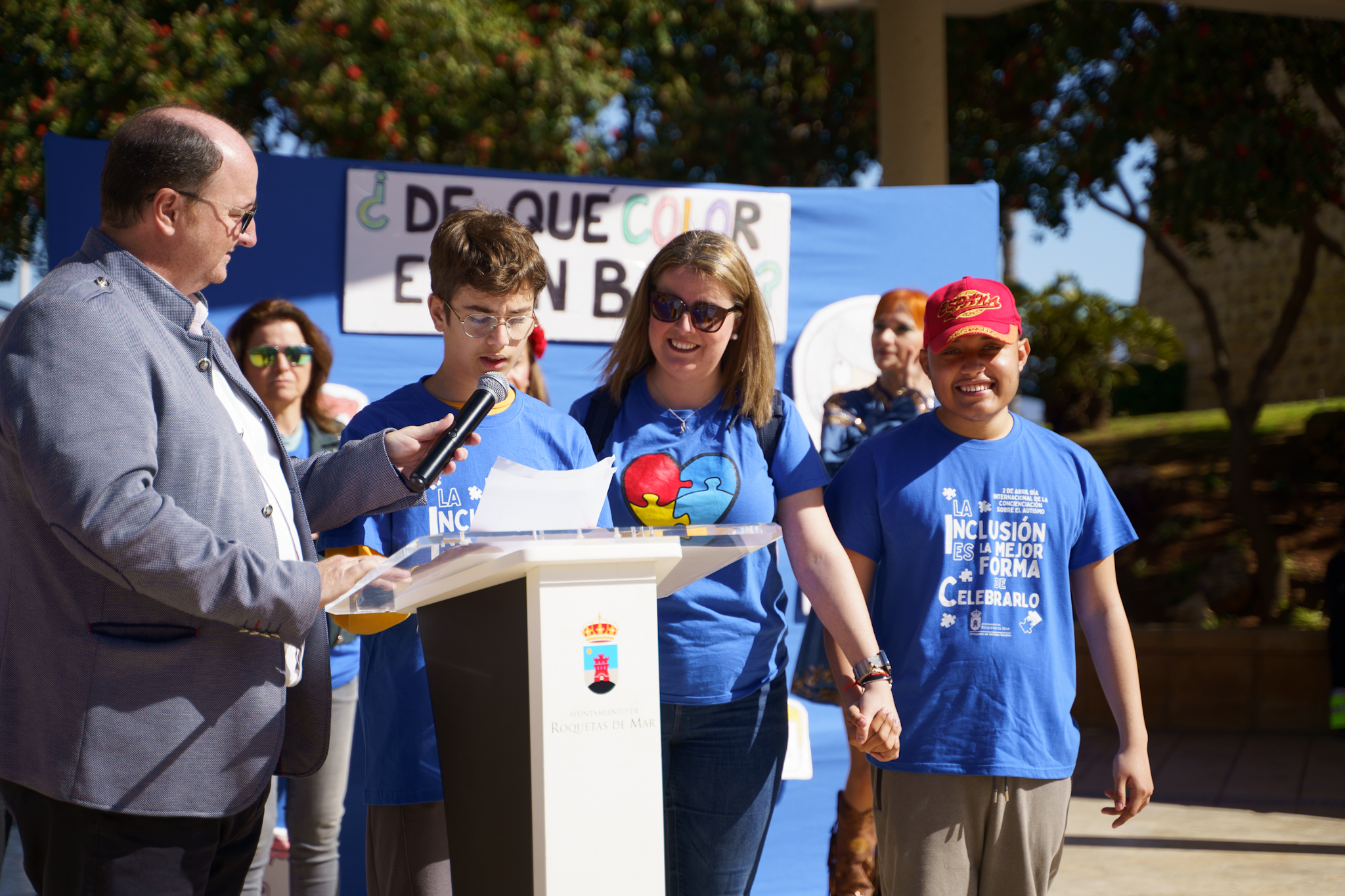 El alcalde de Roquetas de Mar, Gabriel Amat, acompañado por todos los concejales del del equipo de Gobierno han participado en este acto al que también ha asistido la presidenta de Autismo Dárata, Charo Medialdea, la presidenta de Altea, Mari Carmen Almagro y Amparo García, presidenta de la Asociación Asperger junto con familiares y representantes de la comunidad educativa de un total de 14 colegios e institutos del municipio.