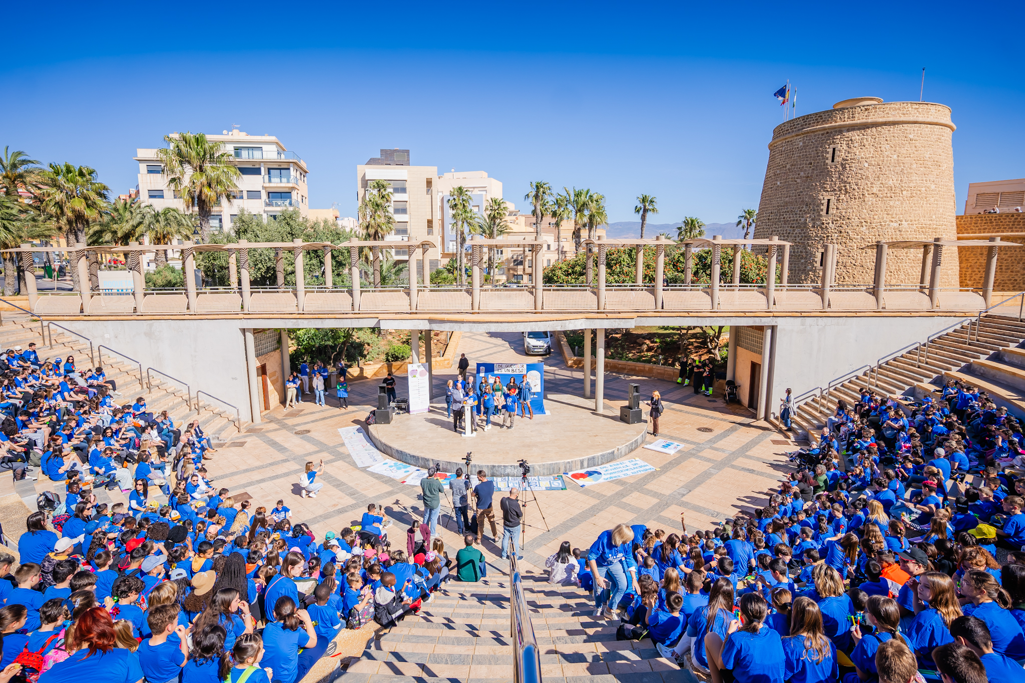 En esta actividad han participado catorce centros educativos del término municipal que cuentan con un total 13 aulas TEA. En concreto, los colegios participantes son CEP Las   Salinas, CEIP Las Marinas, CEIP Virgilio Valdivia, CEIP Arco Iris, CEIP Gabriel Cara, IES Turaniana, CEIP Blas Infante, CEIP Trinidad Martínez, CEIP Posidonia, IES Mar Mediterráneo, IES Sabinar, CEIP Llanos de Marín, CEIP Juan de Orea, CEIP La Molina.  En total, cerca de 800 personas entre alumnos y profesores han iniciado una marcha solidaria desde el aparcamiento de la Lonja del Puerto hasta el Anfiteatro de Roquetas de Mar.