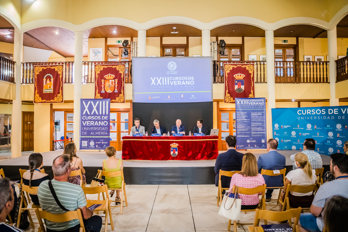Primer día del primer curso en la primera sede- Roquetas de Mar-, y por delante cuatro semanas para ratificar el trabajo que se ha venido realizando durante meses. Las expectativas son las más altas y así ha quedado de manifiesto en el acto de inauguración de los XXIII Cursos de Verano de la Universidad de Almería, realizado en el Castillo de Santa Ana de Roquetas de Mar. Carmelo Rodríguez, rector de la UAL, junto al alcalde de la localidad, Gabriel Amat, y dos directores de los cuatro seminarios que se van a desarrollar durante esta semana en ese municipio, han sido los encargados de hacer oficial la apertura de una edición ambiciosa y que representa la vuelta total al formato presencial, pasando la página de la pandemia y sus dos ediciones on-line e híbrida.