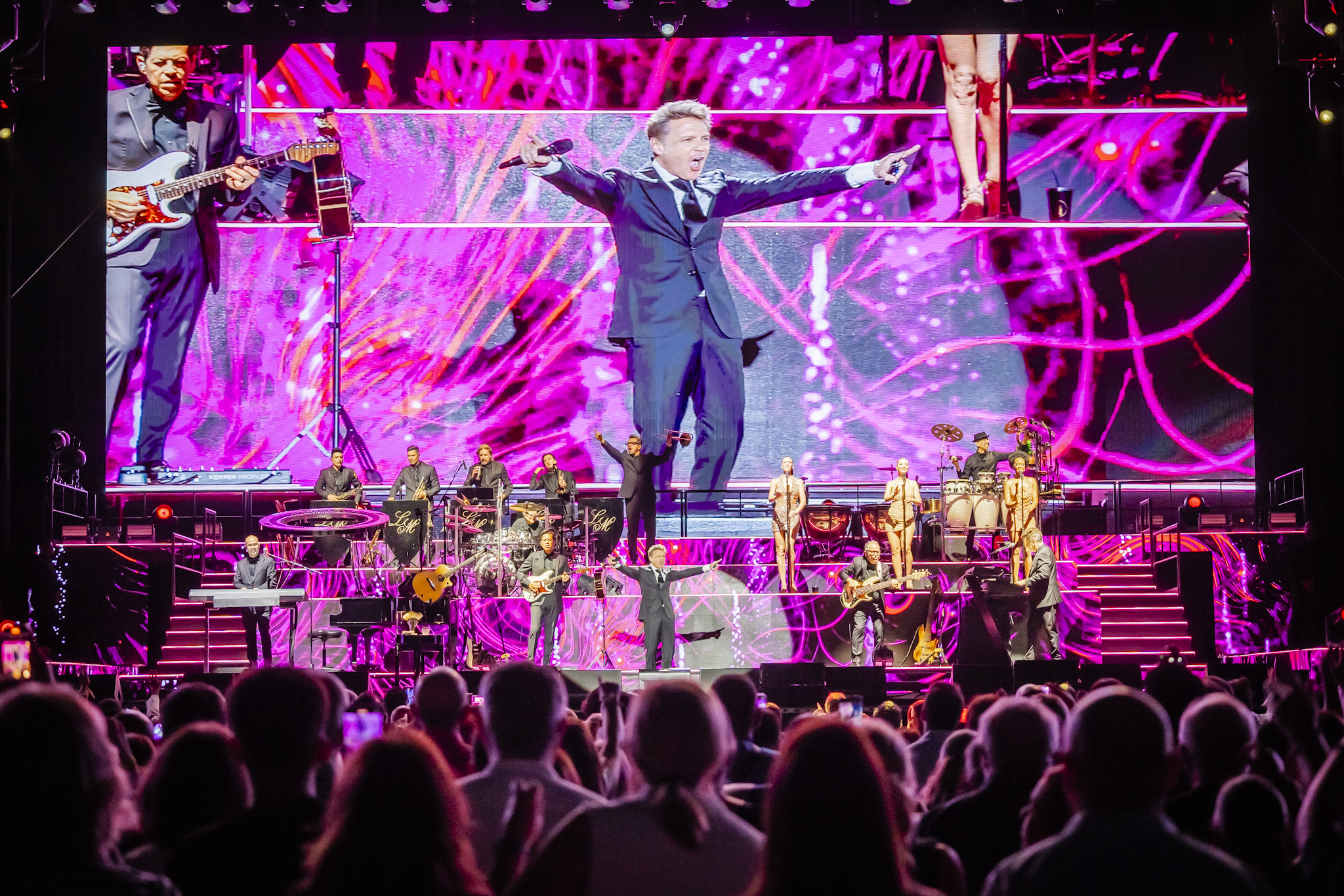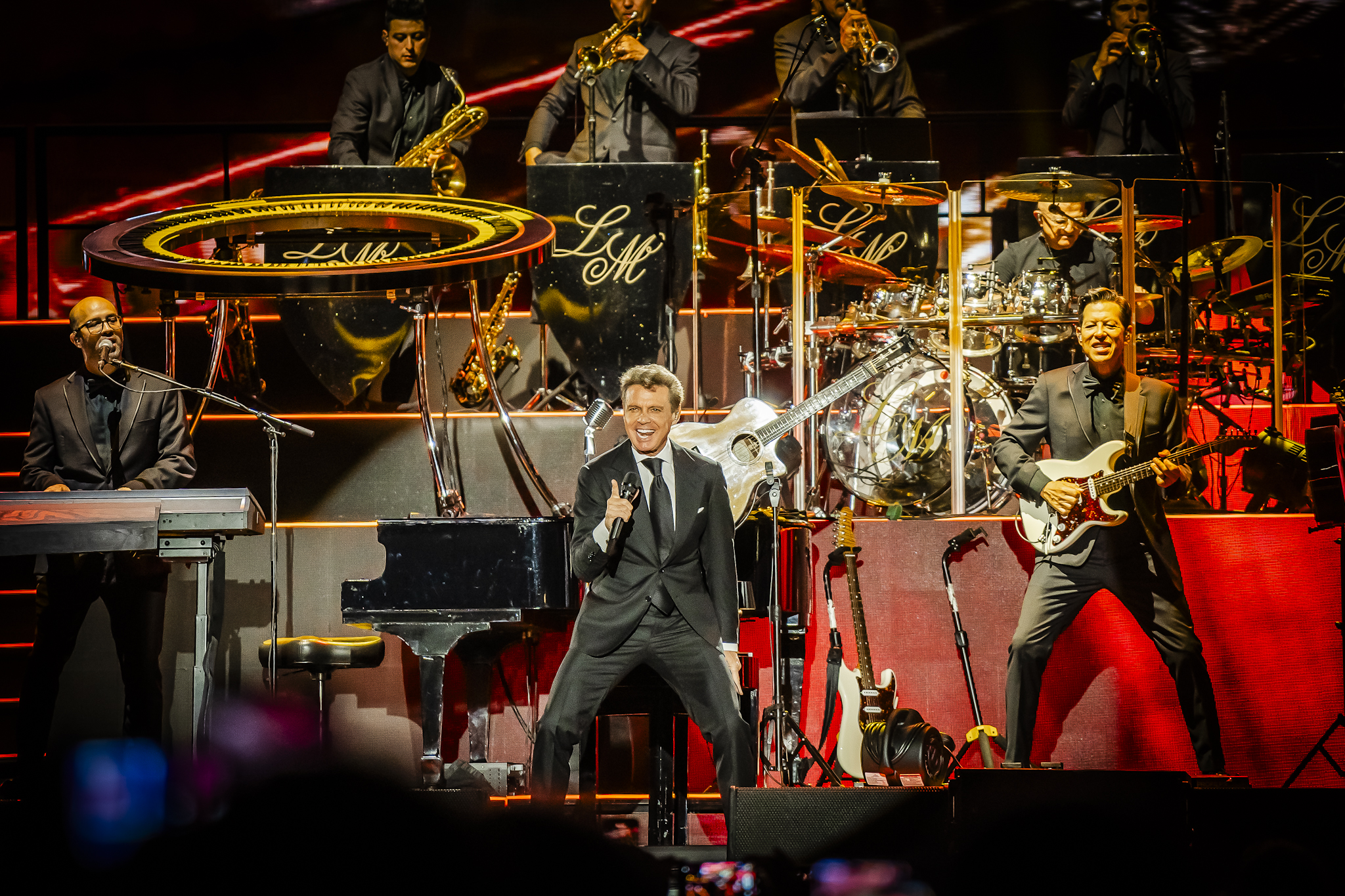 Sin apenas tiempo entre tema y tema, la Orquesta no paraba de sonar. Llegaría luego ‘Amor, amor, amor’, y continuó Luis Miguel siempre con su eterna sonrisa con temas como ‘Suave’, ‘Culpable o no’, ‘Te necesito’, ‘Hasta que me olvides’ y ‘Dame’.