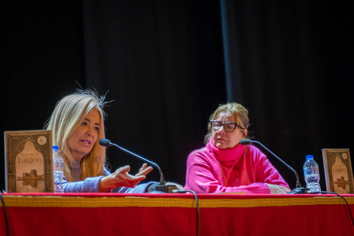 Mary Nelux estuvo acompañada en dicha presentación por Charo Serrano, coordinadora de las Bibliotecas de Roquetas de Mar. Hizo una semblanza de la autora y explicó que “Lagon pertenece al genero de literatura fantástica. Es una literatura que rompe la objetividad, que contiene elementos sobrenaturales o inexplicables y una realidad muy alejada de la que nosotros vivimos”.