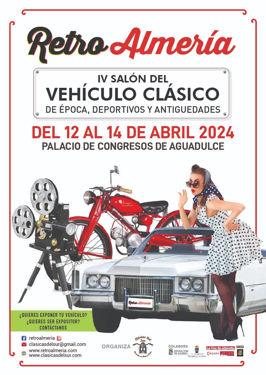 Los amantes del motor y de los vehículos antiguos tienen una cita ineludible en el Palacio de Exposiciones y Congresos de Aguadulce los próximos 12, 13 y 14 de abril con motivo de la IV edición del Salón del Vehículo Clásico, de Época y Antigüedades, RetroAlmería.