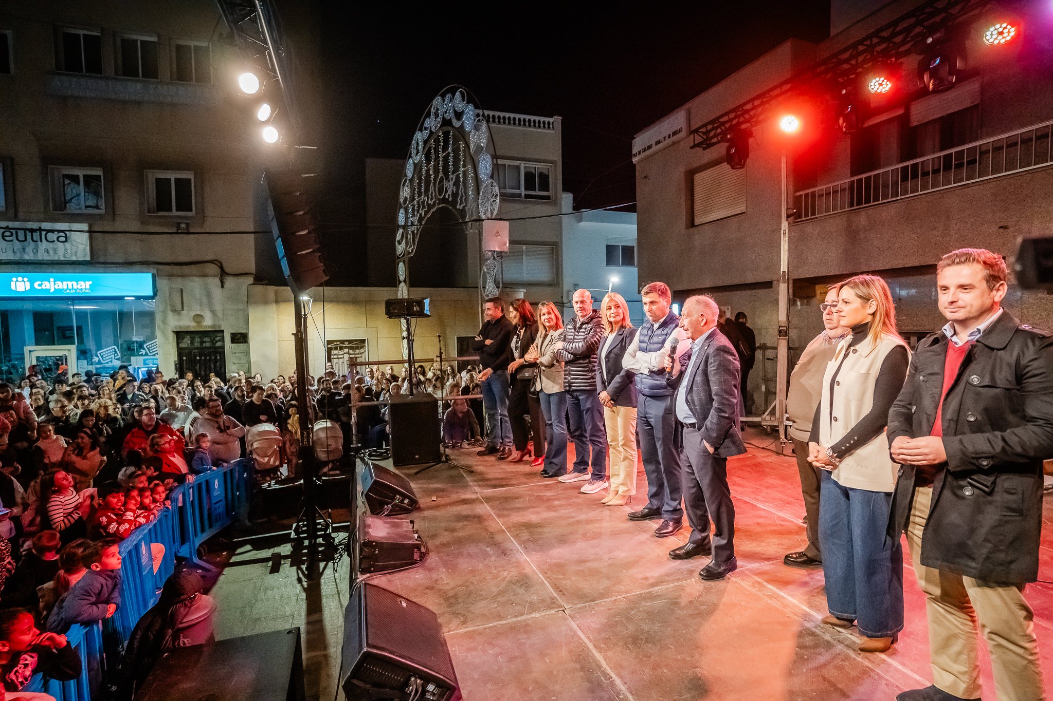 El alcalde de Roquetas de Mar, Gabriel Amat, pulsó el botón del inicio oficial de las fiestas con una iluminación navideña que cuenta con cerca de 900.000 bombillas de bajo consumo, 5 figuras 3D, 378 arcos luminoso, un faro de 25 metros de altura y 11 pinos