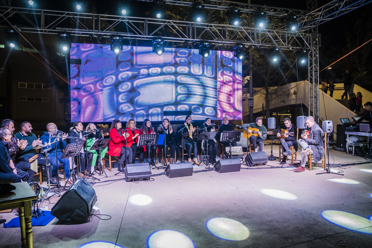 El acto oficial del alumbrado de Navidad en Roquetas de Mar finalizó con la actuación de la Zambomba Flamenca que ofreció al público asistente un repertorio de villancicos tradicionales en la explanada de la Plaza de Toros de Roquetas de Mar.