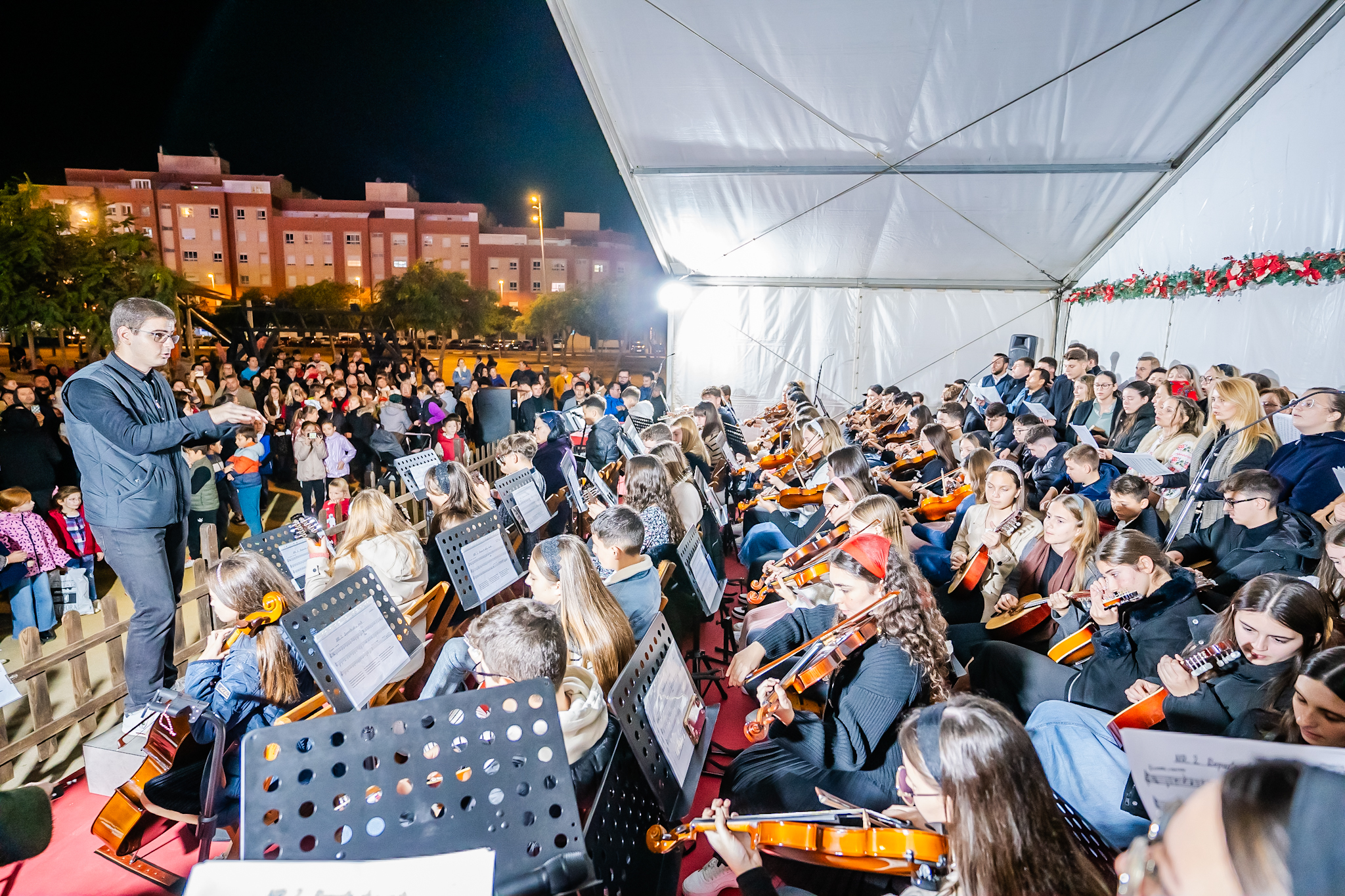 Sobre las siete de la tarde, el alcalde de Roquetas de Mar, Gabriel Amat, acompañado por todos los concejales del equipo de Gobierno se desplazaron hasta este enclave que se convirtió en un auténtico escenario navideño al que se acercaron un gran número de vecinos que quisieron disfrutar del inicio oficial de las fiestas en el municipio.