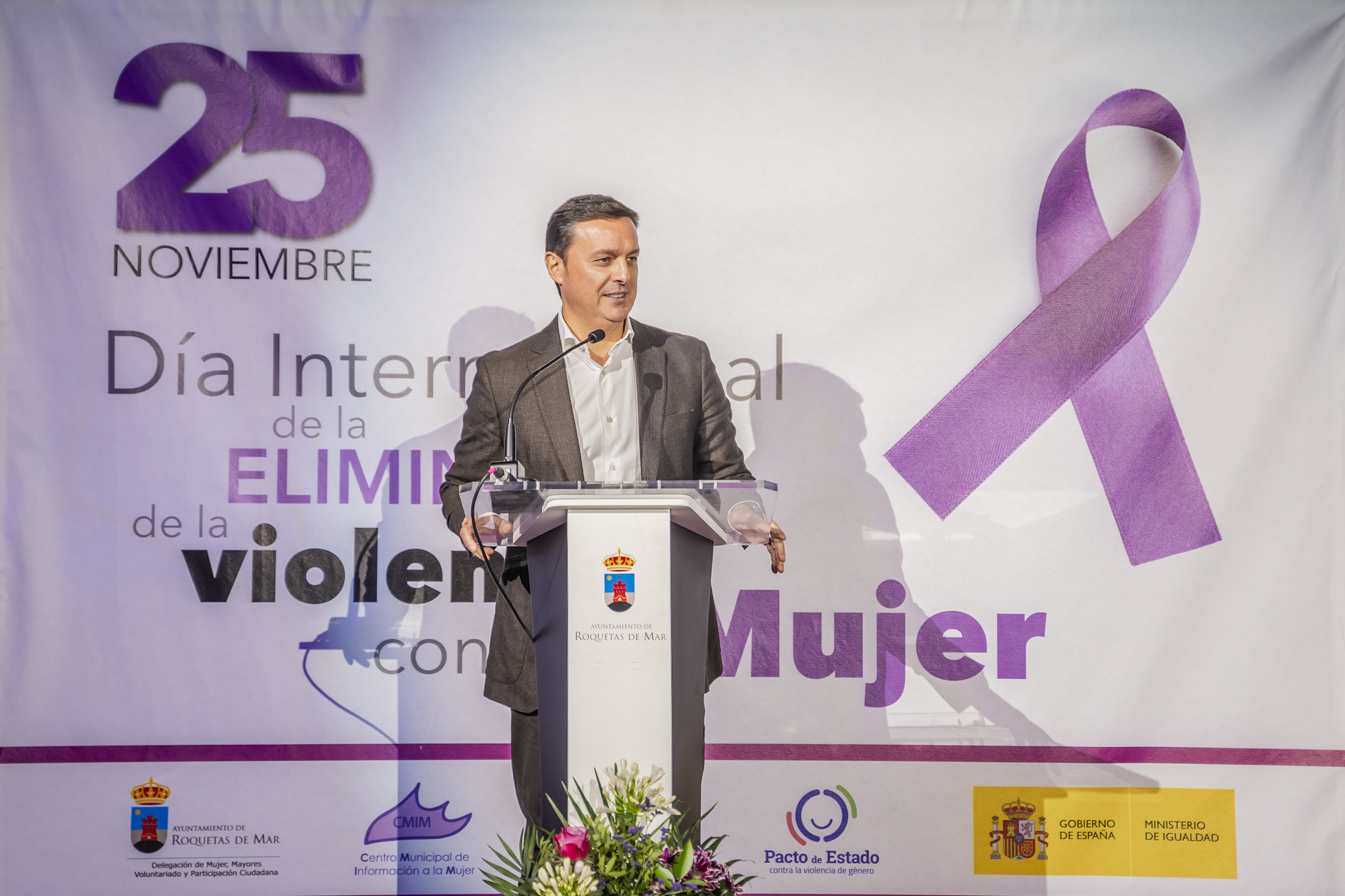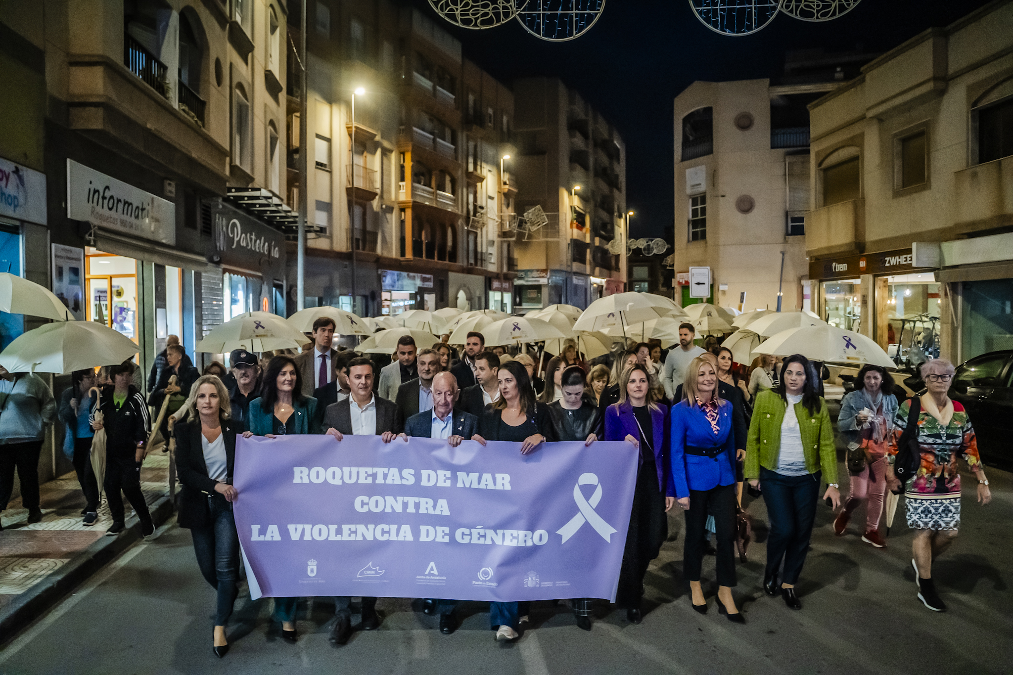 El Ayuntamiento de Roquetas de Mar, junto a la Diputación de Almería y la Junta de Andalucía se han unido para homenajear a las víctimas de la violencia de género y para condenar esta lacra de la sociedad. El centro de la ciudad roquetera ha albergado el acto central del 25 N, Día Internacional para la Eliminación de la Violencia de Género.