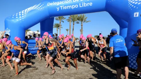 Los triatletas Hugo Arias y Natalia Ramírez, campeones en la General del VII Triatlón Cros Ciudad de Roquetas