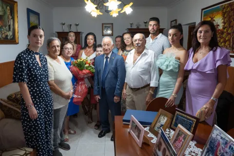 El alcalde entrega una distinción a Juan José Romera Fernández, socio de más edad de la Asociación de Mayores de Las Losas