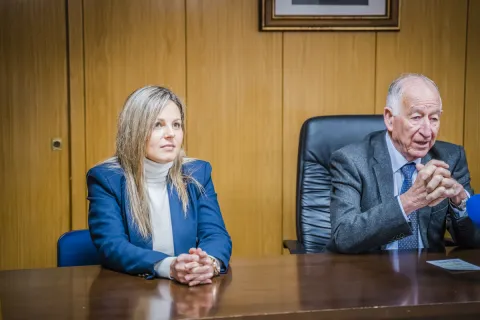 Juanma Moreno y Gabriel Amat han colocado la primera piedra de las obras de conexión de agua desalada en Roquetas de Mar