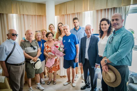 Amat entrega una distinción a Vicente Cejas Solís, socio de mayor edad de la Asociación de Mayores de Aguadulce
