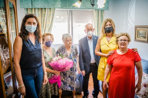 El alcalde entrega una distinción a Joaquina Manzano Fernández, la vecina de mayor edad de Las Marinas