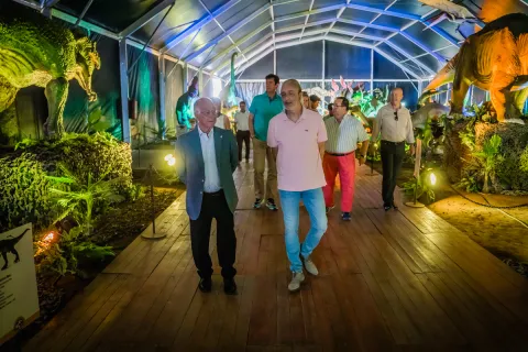 El alcalde inaugura la exposición Dino XXL, la mejor exhibición de Dinosaurios a tamaño real de Europa