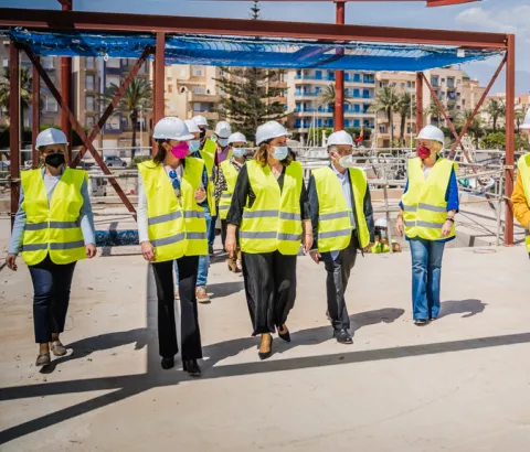 Carmen Crespo y Gabriel Amat visitan las obras de la nueva lonja del puerto pesquero de Roquetas de Mar