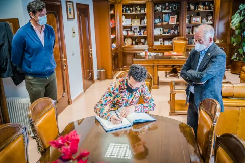 El bailarín y coreógrafo Antonio Najarro firma en el Libro de Honor del Ayuntamiento de Roquetas de Mar