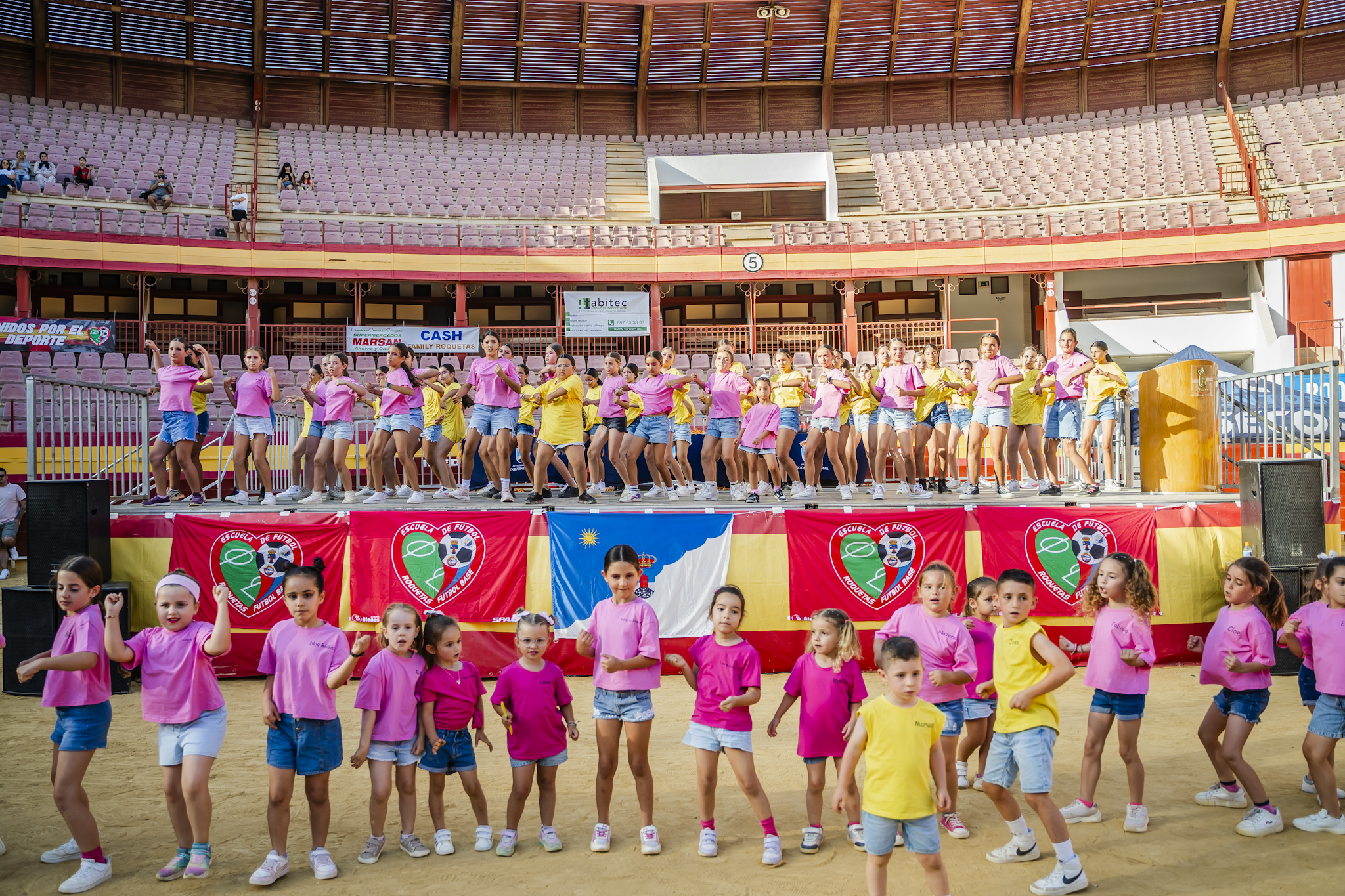 La Plaza de Toros de Roquetas de Mar acogió ayer por la tarde el acto de clausura de la Escuela Municipal de Fútbol de Roquetas de Mar. Más de 1.000 niños, acompañados por sus familiares asistieron a esta tradicional cita con la que han querido despedir la temporada 2023/2024.