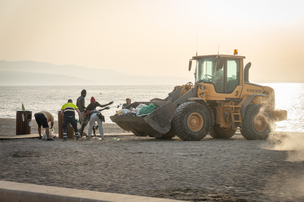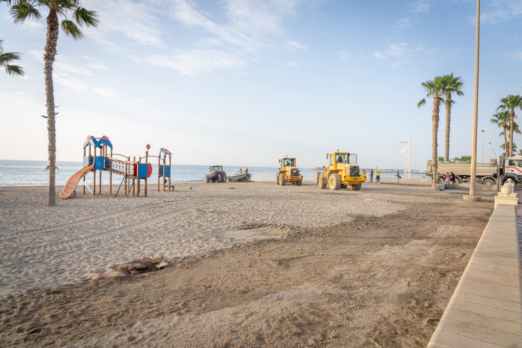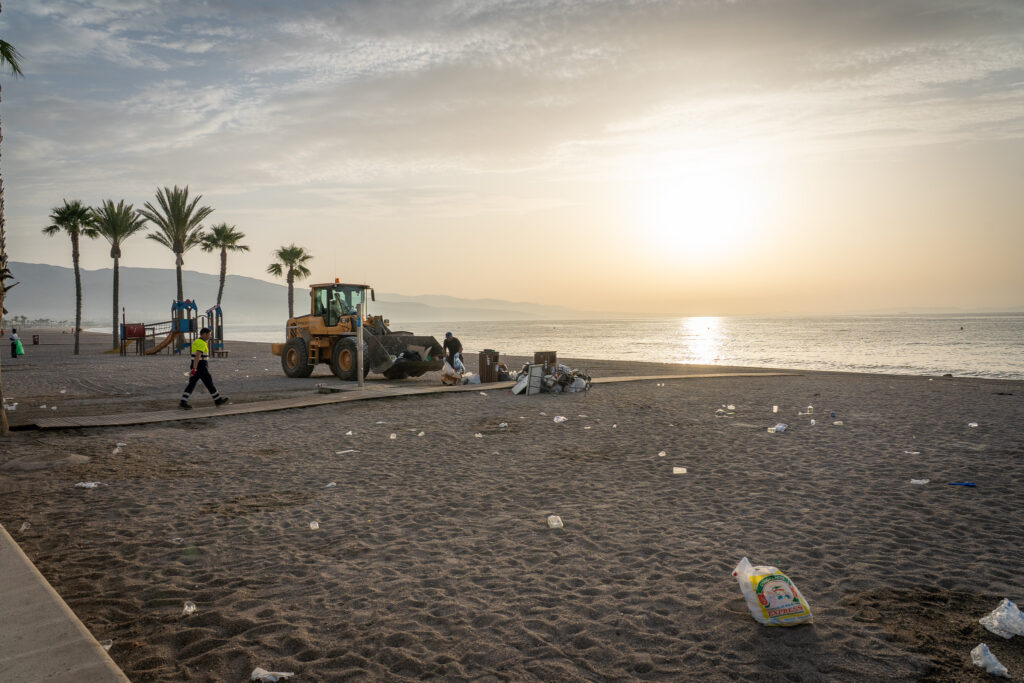 El Ayuntamiento de Roquetas de Mar organizó con motivo de la celebración de esta noche un dispositivo de limpieza tanto en las playas como en los paseos marítimos del municipio que con ha contado con más de 120 operarios y con un total de 16 palas cargadoras y 16 camiones junto con cinco tractores. Este servicio de limpieza, que se ha puesto en marcha a las seis de la mañana, ha contemplado también la limpieza.